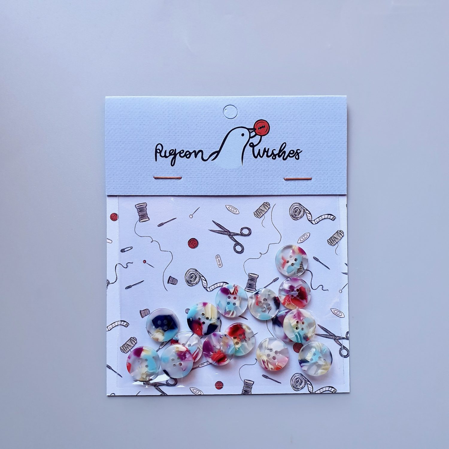 Made from resin these kinds of buttons are tough, glossy and have a smooth texture.